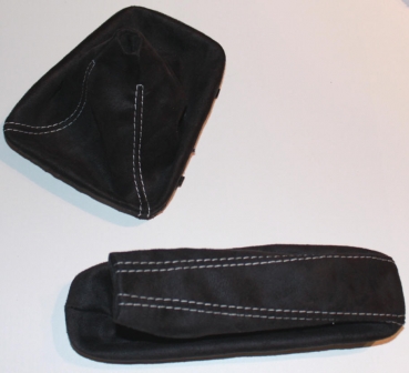 Dieses Set besteht aus einer nach Fahrzeugtyp passgenau angefertigten Schalt.- und einer Handbremsmanschette in Alcantara.
