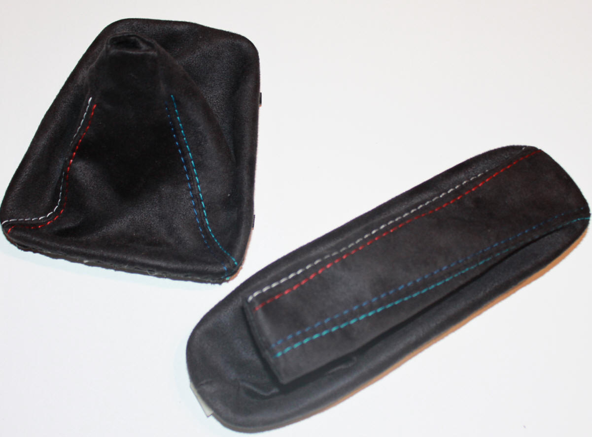 Schaltmanschetten und Handbremsmanschetten in Alcantara grau, anthrazit und schwarz. Nahtfarbe nach Wunsch für fast alle BMW.